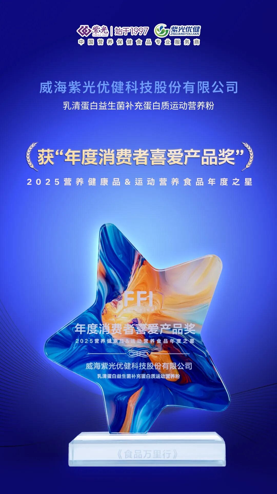 【荣誉上新】趋势共振,荣誉加冕!威海紫光优健运动营养粉获“年度消费者喜爱产品奖”