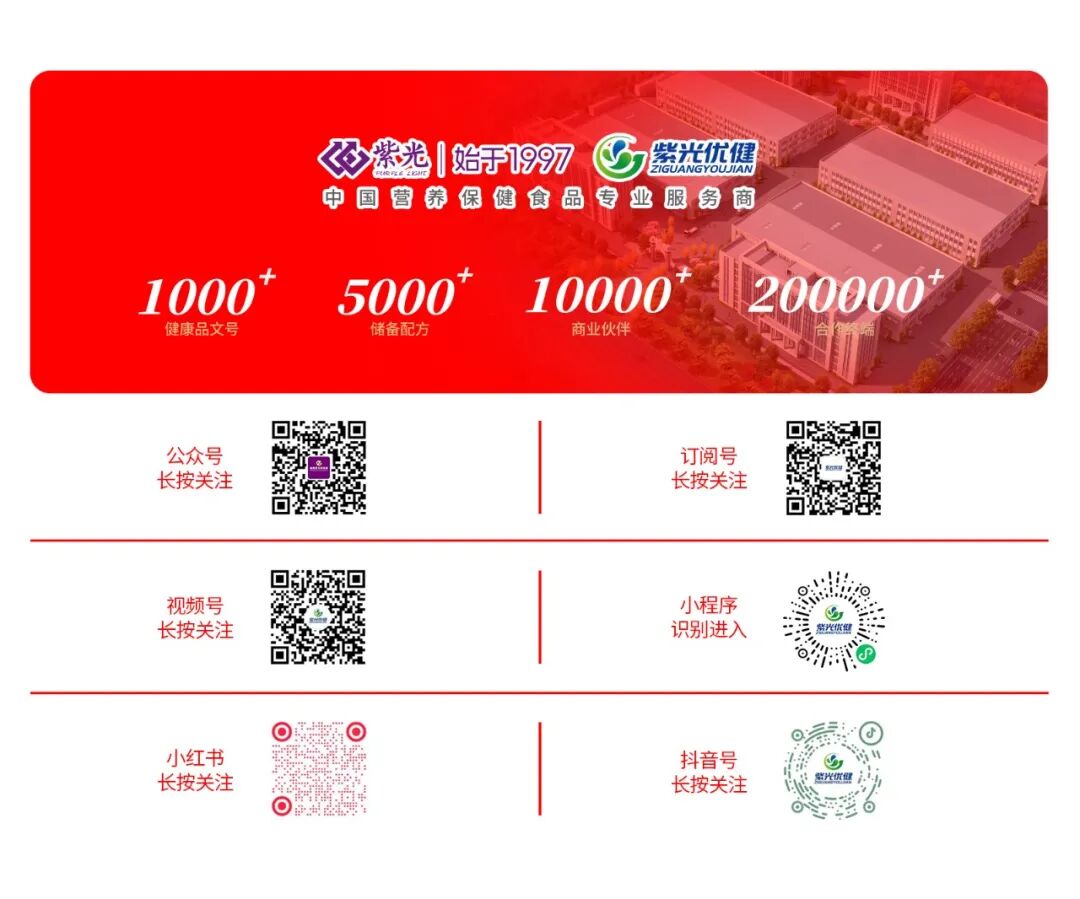 威海紫健(原威海紫光)成立于1997年,坐落于风景秀丽,“最适合人类居住的海滨城市”---山东威海;公司注册资本2亿元,占地面积超过1600亩,现在职员工1200余人;拥有全系健康品智能产业基地、全周期康养产业基地、精细化工产业基地、无花果产业产研基地、健康休闲食品精深加工基地等五大产业基地,及山东省重点研发中心、检测中心等两大基础中心,拥有片剂、软硬胶囊、粉剂、水剂、软糖、爆珠等全剂型42条自动化生产线,专业化车间面积超过30000平,年生产能力超过60亿元;