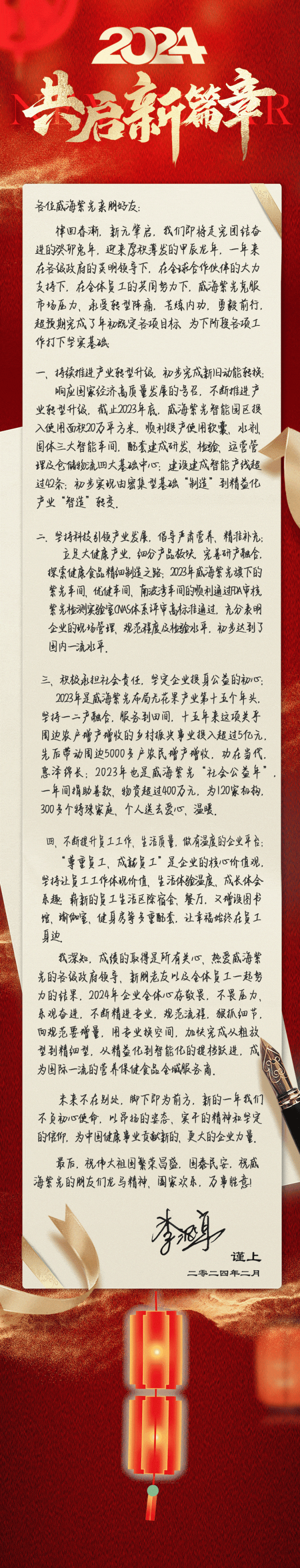 In 2024, we will open a new chapter - Weihai Ziguang wishes everyone a prosperous Year of the Dragon and all success